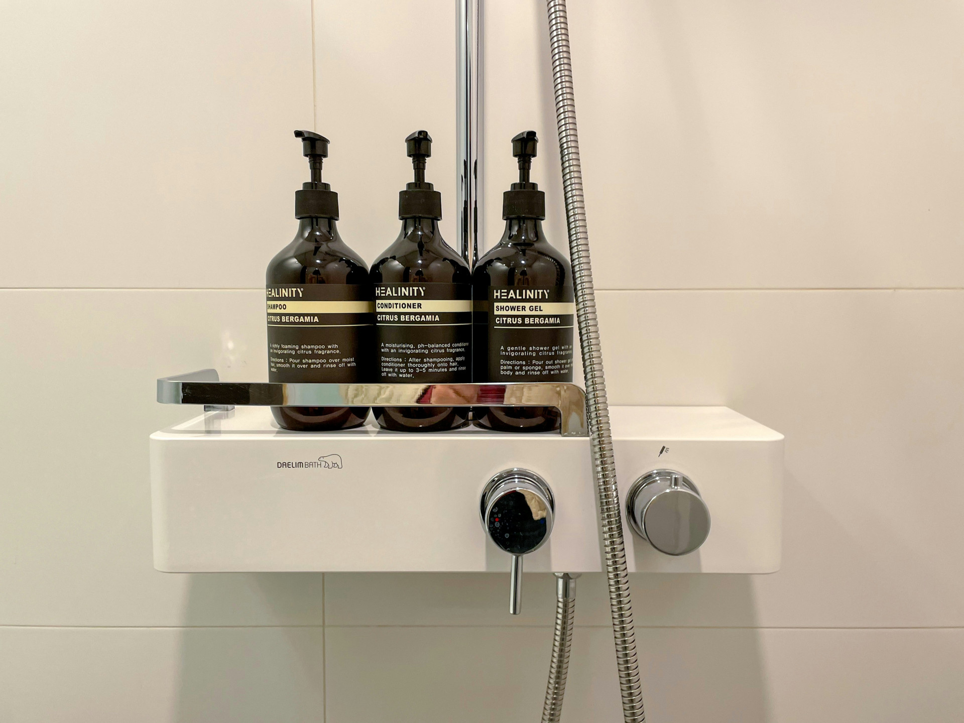 - To brusehoveder: 310 mm hovedbruser og 110 mm håndbruser med flere stråleindstillinger.